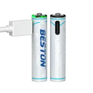 The BESTON USB Rechargeable Lithium Battery 3AC-18 1.5V AAA 400mAh (2 Pcs) is a high-performance, eco-friendly power solution designed to meet the demands of modern electronic devices. With a nominal voltage of 1.5V and a capacity of 400mAh, these batteries deliver reliable and consistent power for a wide range of AAA battery-powered devices. The integrated USB-C charging port allows for convenient and rapid charging, eliminating the need for traditional battery chargers and making it easy to power up using a standard USB-C cable.