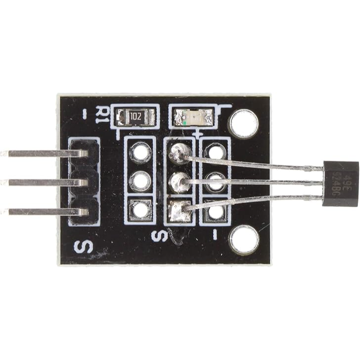 The KY-035 Linear Hall Magnetic Sensor Module is a compact and precise magnetic field sensor based on the AH49E linear Hall-effect IC. It detects both the strength and polarity of magnetic fields, outputting a continuous analog voltage that varies linearly with field intensity. The module is ideal for applications requiring magnetic field measurement or proximity sensing, such as motor speed detection, current sensing, and non-contact positioning.