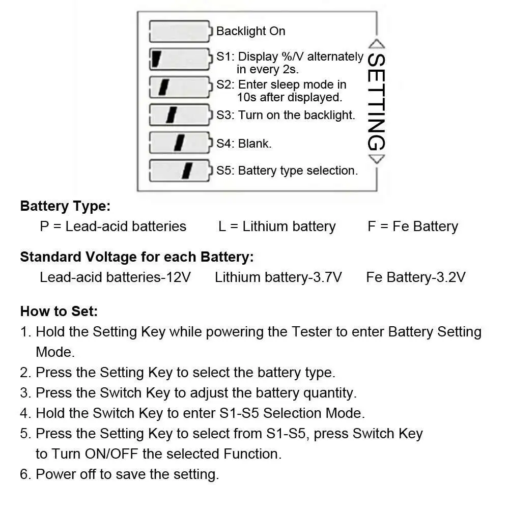 - Short press the function key to select the number of battery strings (the setting key is increased, the function key is reduced)