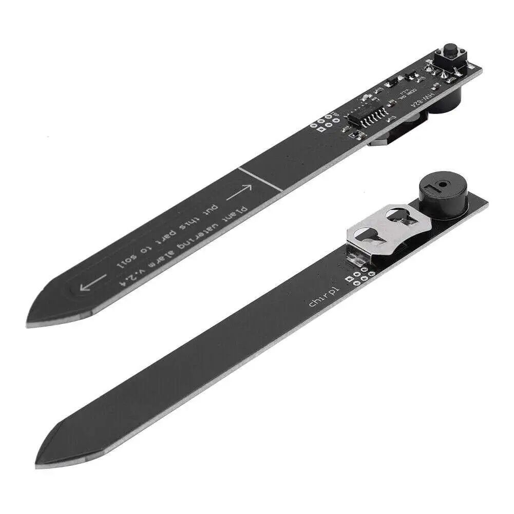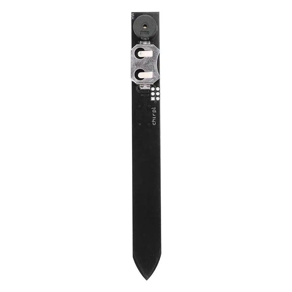 It’s really simple to use. You just stick the inconspicuous black PCB into your plant’s soil with a CR2032 battery in it, click the button on the back to set the “dry point,” then water your precious houseplant. The device then senses the moisture in your soil and “Plant Watering Alarm” through a piezo whenever your plant reaches that dry point again – reminding you that your plant is thirsty!