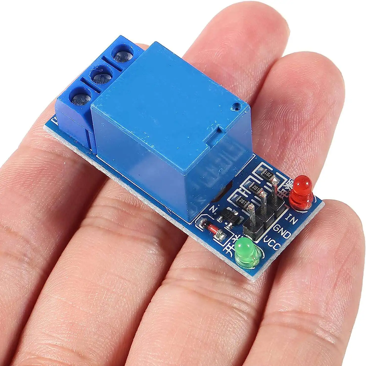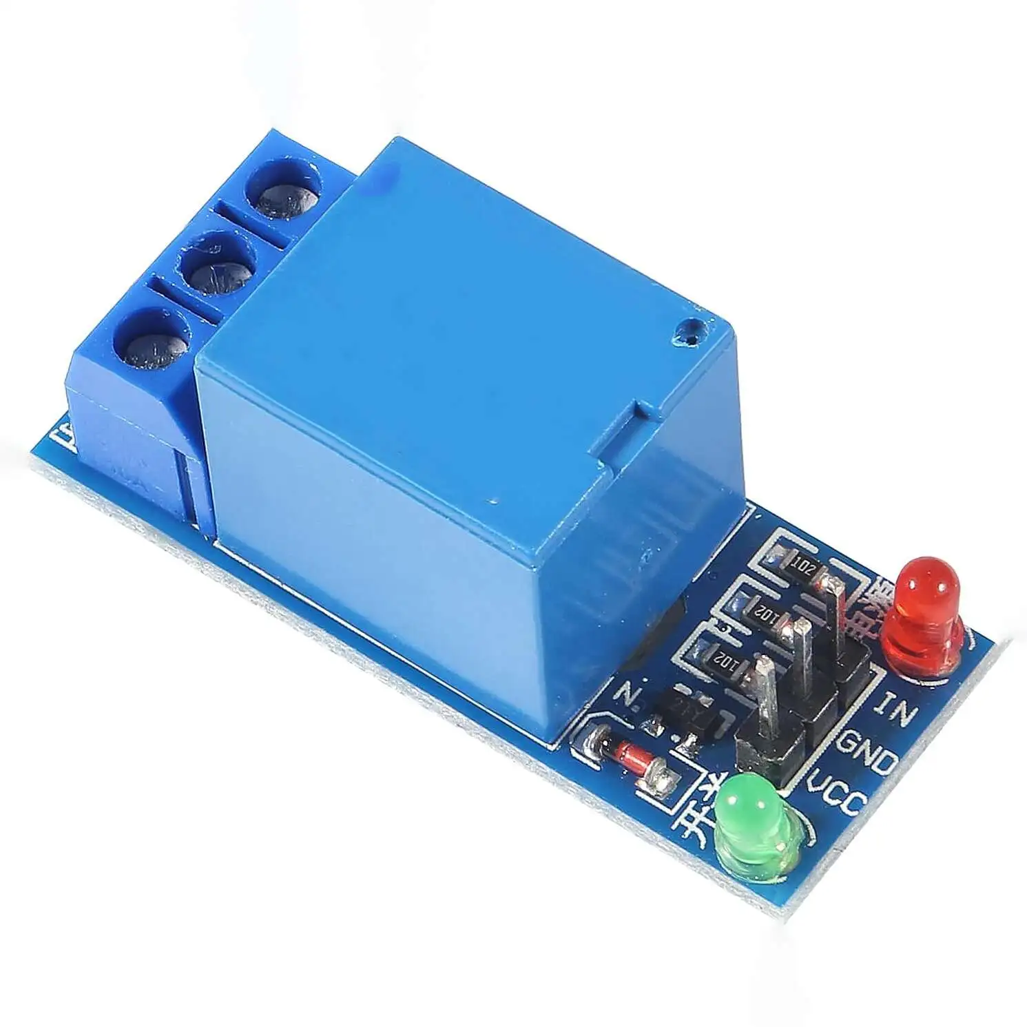 The module has four input / outputVCC, GND, IN. To work correctly, you must connect the power supply 12 V to the VCC pin, mass GND and the input signal IN. Indicating the low state (the potential of the mass) switches the relay contacts. Disabling the IN lead or indicating the high position, switches the relay to its initial state.