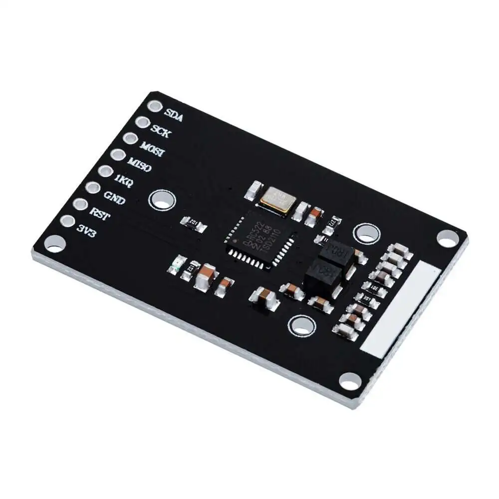 As a new member of the 13.56MHz high-integration read-write card family, the MF RC522 has many similarities with the MF RC500 and MF RC530, as well as many features and differences. It uses SPI mode for communication with the , which helps to reduce wiring, reduce PCB board size and reduce cost. [Introduction to RFID Module] The MF522-MINI module uses RC522 chip to design the card reader circuit. The module works at 13.56MHz frequency and conforms to ISO14443A standard.Suitable for users of advanced applications such as device development and card reader development, and users who need to design/ RF card terminals.