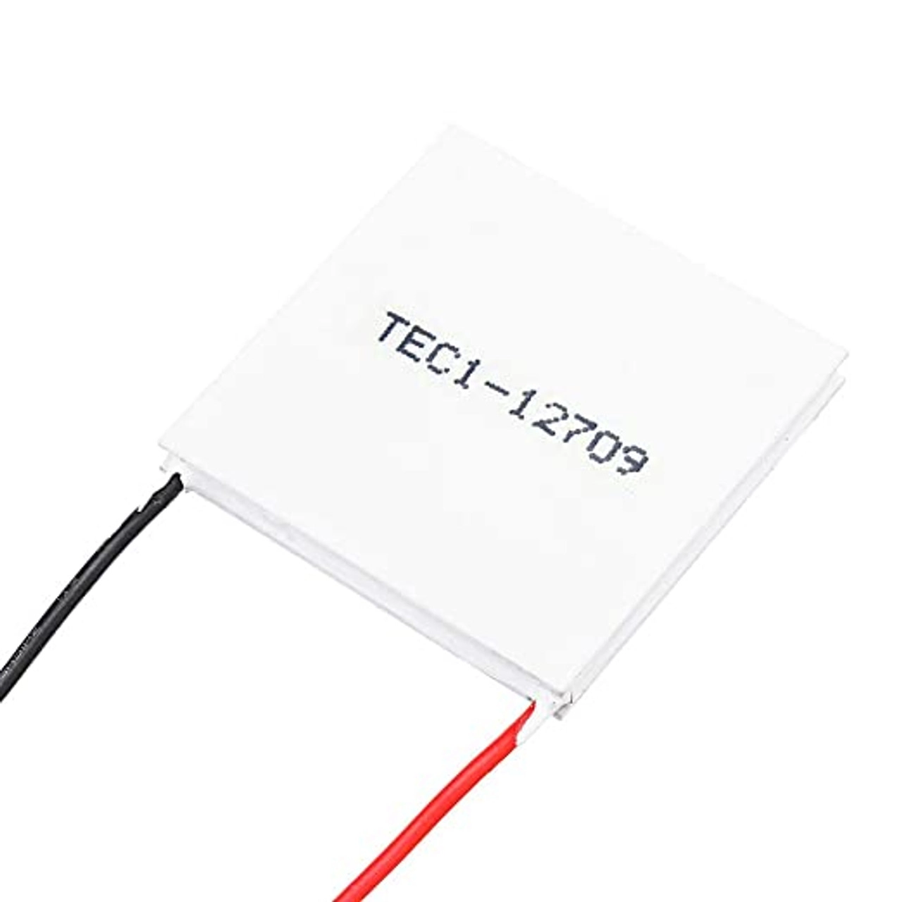 The TEC1-12709 Thermoelectric Cooler 9A Peltier Module is the simple application of the Peltier Thermoelectric Effect. The module features 127 semiconductor couples in the area of 40mmx40mm which very effectively cools and heats up to 80°C.